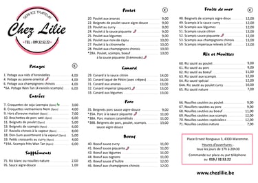 Plats asiatiques et chinois à emporter, commandes par téléphone uniquement pour le moment.
